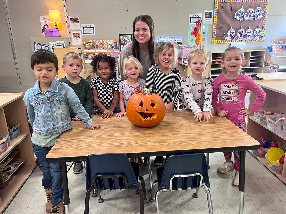 In celebration of Halloween, Miss Aaryn and Mrs. Trinity’s class carved their very own classroom jack-o’-lantern! Students identified the different parts of the pumpkin and even got to touch and explore the pulp and seeds inside. Laughter, some curiosity, and a little bit of pumpkin mess made it a Halloween to remember at Smackover-Norphlet Preschool!